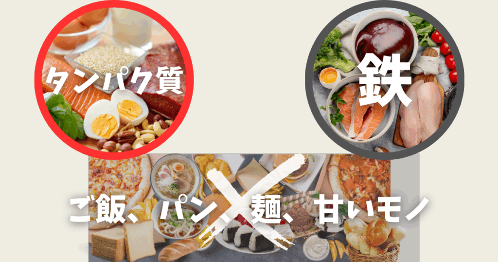 「タンパク質」や「鉄」「ビタミン」などの栄養素が欠かせません。
